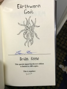 His story Earthworm Gods is a post- apocalyptic tale of biblical proportions. Imagine a world that is ravaged by a non-stop rain that brings gods in the manor of worms to the survivors of a small mountain top town- These survivors are brought about by the characters of two old men.