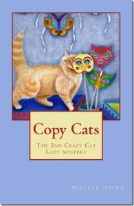 I’m working on “Cat Call”, Crazy Cat Lady #4 (When a friend suffers a bizarre accident, Lynley takes over her job as cat handler for a television pilot, only to find a mysterious “hex” has been sabotaging the set with deadly intent.) and “Cat Café” (A body is found in the cat café, and all the black cats are missing), Crazy Cat Lady #5.